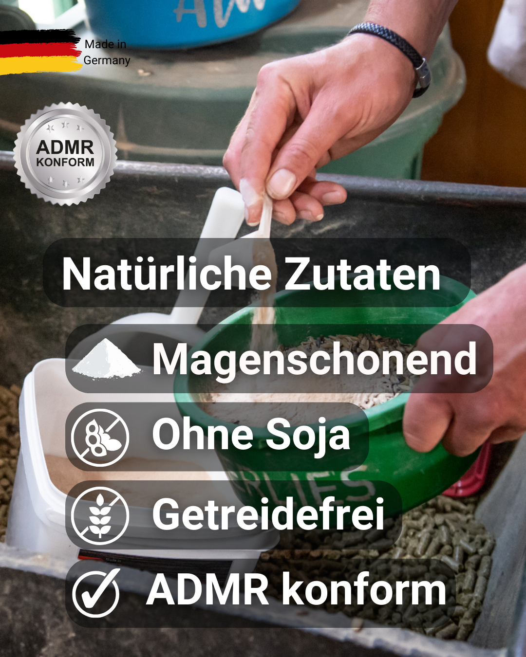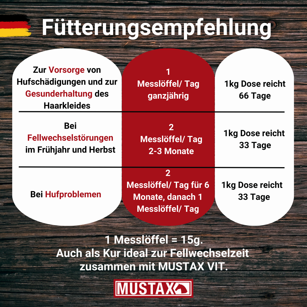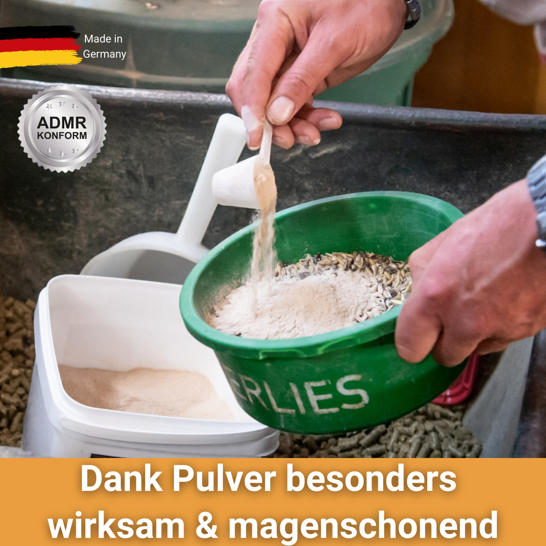 MUSTAX ist dank unseres feinen Pulvers das effektivste Ergänzungsfutter für dein Pferd, höchstverdaulich und schonend für den Magen.