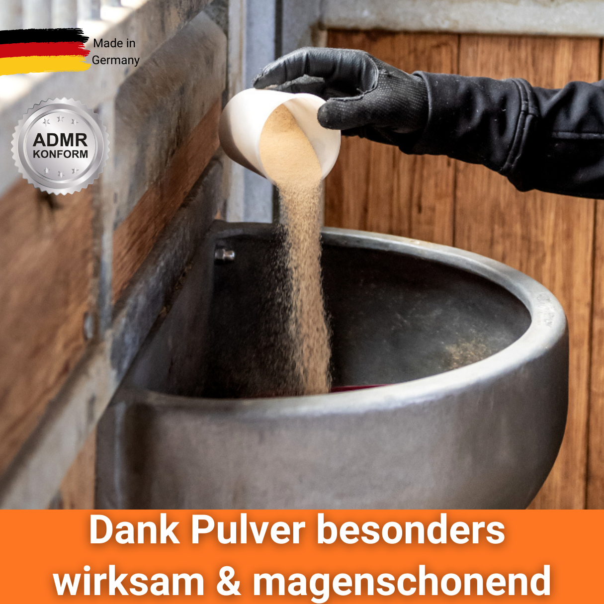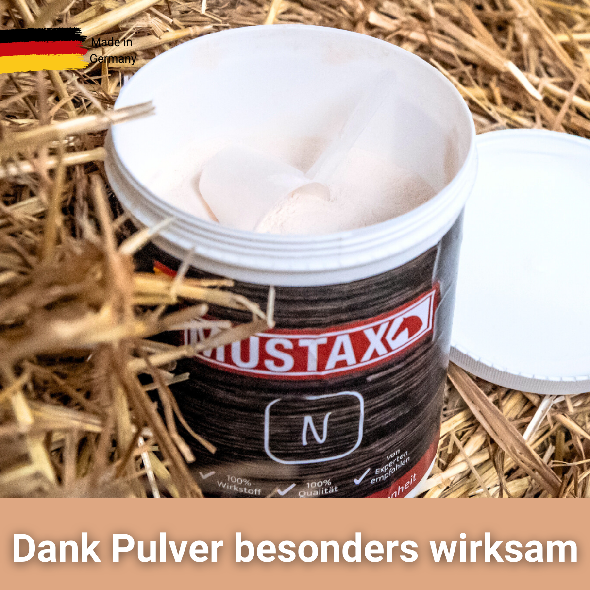 MUSTAX VIT kann als Kur über 5 Tage (bei Bedarf wiederholen) mit dem Kraftfutter gefüttert, oder durch seine Wasserlöslichkeit problemlos über die Tränke verabreicht werden und ist natürlich ADMR-konform.